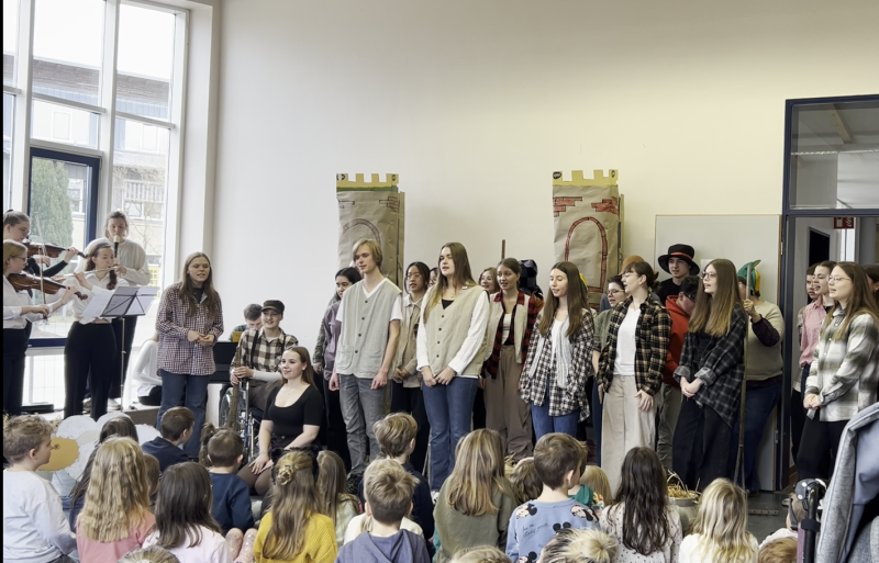 Aufführung des Musiktheaters „Der gestiefelte Kater“ an der Regenbogenschule Landsberg